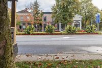 A suburban neighborhood in Ontario, Canada on a gloomy autumn day. Classic architecture houses line the road with trees and vegetation in the foreground. The grey sky sets a gloomy atmosphere.