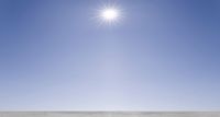 A sunny day in Europe, with clear skies and the sun visible. The open space offers a picturesque landscape. The concrete surface shines under the noon sun, reflecting the beauty of nature.