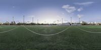 a wide angle view of a field in an outdoor setting with a sky background and clouds