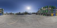 A sunny day in Jonesborough, Tennessee. The industrial area showcases a variety of buildings, including factories and office buildings. Streets lined with trees and vegetation provide a picturesque backdrop. The clear sky adds to the symmetrical beauty of the landscape.