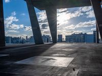 A sunny day in Miami, Florida, with the city skyline in view. Tall skyscrapers create a concrete jungle while the bright sun casts hard shadows. The urban cityscape is complemented by a clear blue sky.