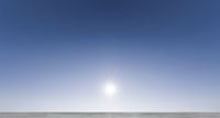This image captures an open space in Europe with a clear sky and the sun shining brightly. The concrete surface reflects the sunny weather and creates a bright and inviting atmosphere. The landscape shows the beauty of nature in this European location. The sun is visible in the clear sky, providing ample sunshine and a cheerful ambiance to the scene. This picture represents a sunny day in Europe, highlighting the open space and the connection between nature and urban environments.