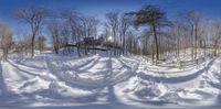 there is a large mound of snow in the woods with snowmobiles all around