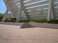 A sunny day in Zaragoza, Spain, with modern architecture casting hard shadows on cobblestone surfaces. The open spaces and urban setting make for a picturesque scene in this European city.