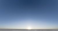 An HDR image of a sunny open space in Europe, with a clear sky and visible sun. The concrete surface reflects the vibrant colors of the dawn. A perfect representation of nature's beauty.