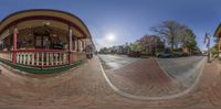A sunny day in Tennessee, showcasing a classic brownstone house in a residential area. The straight road leads to a charming neighborhood with antique architecture and suburban charm.
