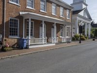 Sunny suburban street in Tennessee with brownstone and classic architecture. Brick-paved road lined with windows trimmed in white. Urban design meets antique charm in this residential area.