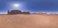 A sunny day in Utah, USA, showcasing a vast open landscape with clear skies and the sun visible. Gravel and dirt surfaces contrast with rocky areas. Nature at its finest in the open space.