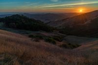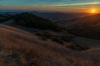 Witness the breathtaking beauty of a highland landscape at dawn. The first rays of sunlight illuminate the rolling slopes and lush vegetation, creating a serene atmosphere in this open space. The majestic mountains stand tall against the clear blue sky adorned with fluffy clouds. The grass surface glistens with dew, adding to the tranquility of this natural haven. Capture the essence of nature as the sun becomes visible, filling the scene with warm sunshine and bringing a touch of magic to the early morning.