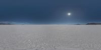 the sun is shining over a vast desert landscape with snow on it and a blue sky
