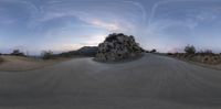 Sunset in California: Skateboarder by a Rocky Hill and Mountain