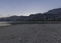 This stunning stock photo captures the beauty of Mallorca, a Spanish island in the Balearic Islands. The sun sets at low tide, casting shadows on the distant mountains, creating a breathtaking landscape. The open space and wilderness of the area provide a serene and peaceful atmosphere. The clear sky reflects on the surface of the water, adding to the natural beauty of the scene. This image showcases the highlands and mountain range of Mallorca, with its gravel and dirt terrain. It is a perfect representation of the natural wonders of this European island.