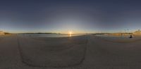 a panorama photo taken on the beach at sunset shows a beautiful body of water and buildings