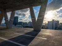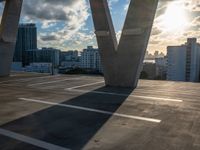 Sunset Over Miami: Modern Buildings and Parking Lot