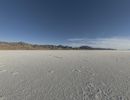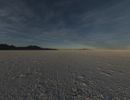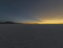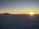 A stunning sunset in Utah, USA. The sun casts a warm glow on the ice-covered field, with mountains in the background. The serene atmosphere and clear sky create a breathtaking natural landscape.