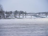 Suspension Bridge in Sweden Over Frozen River