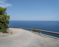 A scenic coastal road in Spain, winding along the cliffs with the sparkling blue ocean as the backdrop. The clear sky enhances the beauty of the landscape. Experience the breathtaking nature of the Balearic Islands.