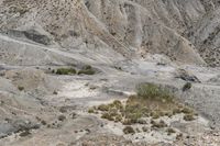 a man rides a motorcycle through a canyon in death valley national park, nevada, with steep mountains behind him