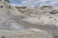An off-road track in Tabernas, Spain, surrounded by stunning desert landscapes. The rugged mountain slopes, rocky outcrops, and gravel formations create a unique and picturesque scenery. Clouds leave contrails across the clear blue sky.