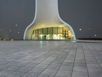This stock photo features a stunning example of modern architecture in Taichung, Taiwan. The image shows an area with a large dome-like structure next to a sidewalk at night, beautifully illuminated with lights. This architectural masterpiece is a testament to the innovative design found in this vibrant city in Asia. The dome's smooth surface and the carefully crafted pavers on the plaza below create a visually captivating scene. This photo captures the essence of contemporary architecture in Taichung, making it a great choice for any creative project.