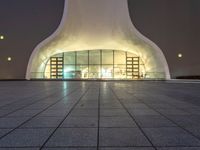 A nighttime view of a modern plaza in Taichung, Taiwan. The surface is illuminated with artificial lights, creating a captivating scene. Modern architecture and streetlights add to the allure of this APAC city.