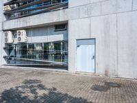 This is an image of a modern apartment building in Taipei, Taiwan. The concrete facade of the building stands out against the clear blue sky, creating a stark contrast. The side parking space adds to the functionality of the building. This photo represents the business district of Taipei, a bustling area with office buildings and business activities. The hard shadows cast by the sun give the image a dramatic effect. With its modern architectural design, this building exemplifies the progress and prosperity of Taipei, the capital city of Taiwan.