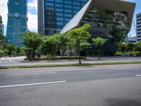 This image captures the modern architecture and urban design in Taipei City, Taiwan. The clear sky above highlights the futuristic high-rise buildings on either side of an empty road surface. Lined with trees, the asphalt road leads to the bustling city center. This cityscape represents the vibrant city life and booming property development in Taipei. The blend of traditional and modern architecture showcases Taipei as a thriving urban hub in Asia.