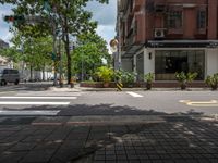 A modern urban scene in Taipei, Taiwan. The city's architecture and design are showcased in the window reflections and shadows. Busy roads and zebra crossings add to the city life atmosphere.