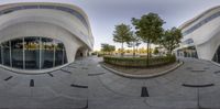 A sunny day in Taipei, Taiwan. The urban open space is lined with buildings and a library. Clear skies cast hard shadows on the straight road surface. Urban design at its finest in the Republic of China.
