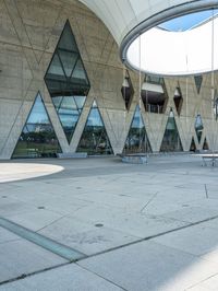 a man riding a skateboard next to an outdoor structure under a dome like structure