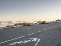At the break of day in Tenerife, Spain, an empty road snakes through the picturesque landscape. Mountains and clouds create a stunning backdrop. This serene scene captures the beauty of nature in Europe.