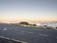 A picturesque landscape of Tenerife, Spain during winter dawn. The road winds through the desert landscape, surrounded by mountains and trees. Clear sky and clouds create a stunning horizon over the valley.