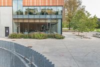 This image showcases the architectural design and urban landscape of a high-rise residential building in Toronto, Canada. The photo captures the city skyline and the surrounding suburban neighborhood. The buildings are made of bricks and feature large windows, providing a glimpse of the interior flooring and open spaces. The road surfaces and curbs are visible, along with the tree-lined streets and vegetation that add greenery to the urban environment. This photo represents the blend of urban design, residential areas, and public spaces in the city of Toronto.