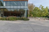 A scenic view of a suburban neighborhood in Toronto, Canada. The trees provide shade on the open spaces and roads while the buildings create a unique urban design. The clear sky and hard shadows create a picturesque scene.