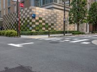 A bustling street in the heart of Tokyo's business district. Modern architecture and urban design dominate the scene. Pedestrians walk across the crosswalks amidst the towering office buildings of Japan's vibrant capital.