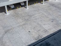 This aerial photo captures an elevated view of a parking garage in Miami Beach, Florida, USA. The concrete surface of the parking lot is filled with parked cars. The yellow border around the curb adds a vibrant touch to the scene. The high position of the photographer provides a unique top-down perspective of the bustling parking area. This image represents a typical day in Miami, where parking spaces are in high demand. It showcases the urban infrastructure and the hustle and bustle of the city.