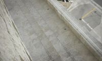 This stock photo features a captivating top-down view of modern architecture in the city of Los Angeles, California, USA. The image showcases two vehicles parked in a parking lot near the wall of a building, providing a unique perspective on the urban landscape at dawn. The concrete and composite material structures, along with the elevated road and line patterns, create an intriguing visual composition. The hardwood flooring, metallic elements, and marble-like tiles add intricate details to the overall design. This photograph beautifully captures the essence of urban life and showcases the impressive architectural elements of the city.
