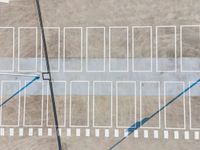 Top-down view of a modern architecture in the Netherlands. The elevated parking deck provides an open space with concrete streets and a high sleek design. A perfect example of European urban architecture.