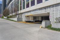 A modern residential building in Toronto, Ontario. The glass facade and composite material give it a sleek look. The surrounding suburban area is lined with roads and vegetation, creating a perfect blend of urban and natural elements.