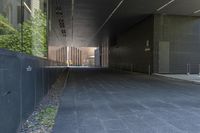 This walkway in Toronto has a modern design, surrounded by tall buildings and trees. It leads to an atrium, making it a perfect example of urban architecture in the city. The walkway is made of concrete and lined with tiles, creating a sleek and contemporary look. The surrounding business district adds to the energetic atmosphere of city life. This image captures the essence of Toronto's urban design and showcases the infrastructure and real estate of the bustling metropolis.