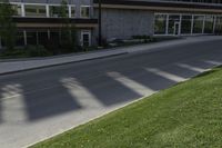 A person on a cell phone is walking down the sidewalk outside a tall building with a sign for the business. The city of Toronto, known for its urban design and public spaces, is the location of this photo. The building is part of a residential area and is surrounded by vegetation and asphalt road surface. The image captures the vibrant atmosphere of the city during the day, with elevated structures and high-rise buildings. In the distance, industrial factories and warehouses can be seen, adding to the dynamic nature of Toronto's urban landscape.