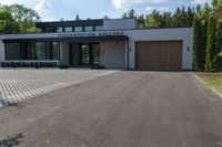 A modern office building in Toronto, Canada. This architectural masterpiece stands tall in the bustling business district. Surrounded by green vegetation, it exudes a sense of sophistication and professionalism. A cloudless day provides the perfect backdrop to this impressive structure.