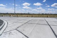 the intersection in this city is empty and vacant except for a lot of concrete parking spaces