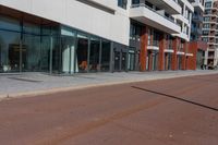 A vibrant city scene in Toronto, Canada. A red fire hydrant stands against a red brick street, surrounded by beautiful architecture and bustling businesses. The blend of brick and composite materials create a unique urban design.