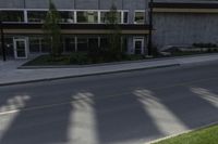 This is an image of a high-rise building in a residential area of Toronto, Canada. The urban design features a mix of residential and industrial buildings. The road surface is made of asphalt, with cars parked along the curb. Trees and vegetation line the sidewalks, providing a touch of greenery in the city. In the foreground, a warehouse with a high facade stands tall. This photo captures the essence of urban life in Toronto, showcasing the city's vibrant and diverse landscape.