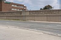A modern office building in the business district of Toronto, Ontario. The sleek architecture with composite material and stone wall facade stands out against the clear sky. The road and driveway lead to the urban entry with a bridge and underpass.