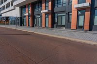A view of a busy city street in Toronto, Canada. The asphalt road is lined with office buildings, their facades featuring large windows. The urban design and well-maintained road surface reflect the modern atmosphere of the business district in Ontario.