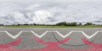 a view from inside the air with some red and white arrows drawn on it and a sky in the background