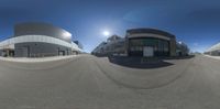 A view of Toronto's downtown skyline, showcasing its modern architecture and high-rise buildings. The clear sky provides a backdrop for the city's impressive skyline. The 360-lens captures the grandeur of the tall buildings.