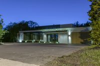 the building has large windows on all sides of it to let in plenty of light and privacy